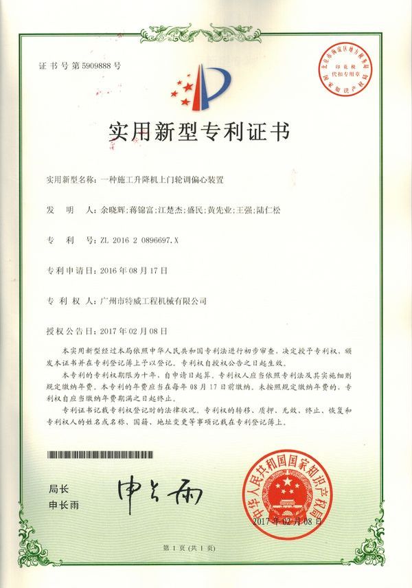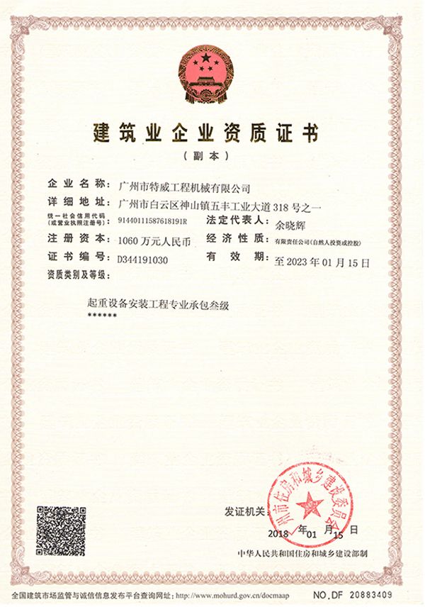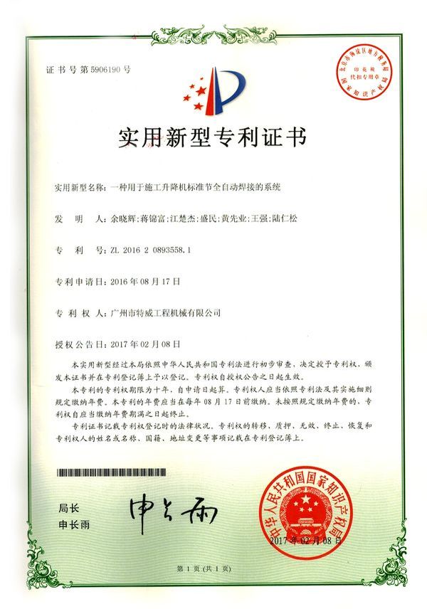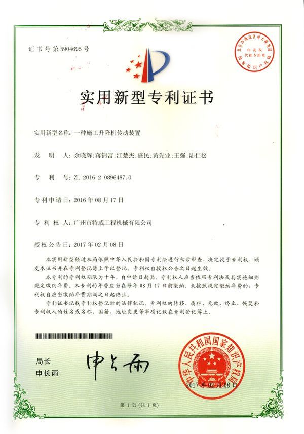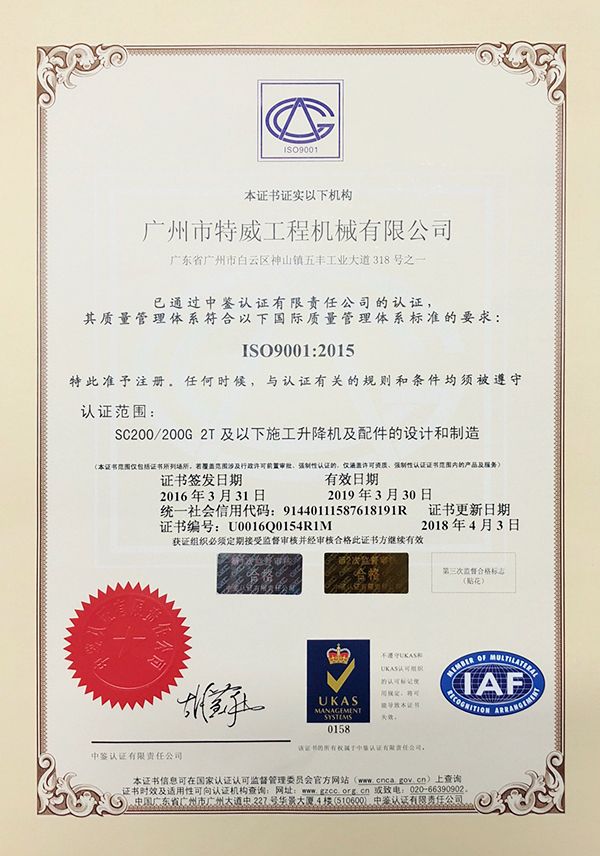 走进特威 Enter Twain 精益求精 传承工匠精神 三亿在线客服地处广州市白云区神山镇,广清高速神山出口附近,是一家施工升降机的专业生产厂家。公司成立于2011年,占地100000多平方米,注册资金1060万元,现有员工300余人其中工程技术人员33人,高级技术人员52人。SC200/200G型施工升降机是特威公司的主导产品,是一种靠齿轮齿条传动的电梯。具有广泛的用途,不仅可用于一般的高层建筑施工的人、货运输,还可用于工业、电力、矿井、石油、化工等领域的人货运输。整机的工作级别为A8。 公司产品严格执行行业标准并进行大量人性化处理,在吊笼内饰、电控箱、驾驶室等部位进行优化改进,使用起来更为方便、安全。了解更多特威简介发展历程资质荣誉服务理念